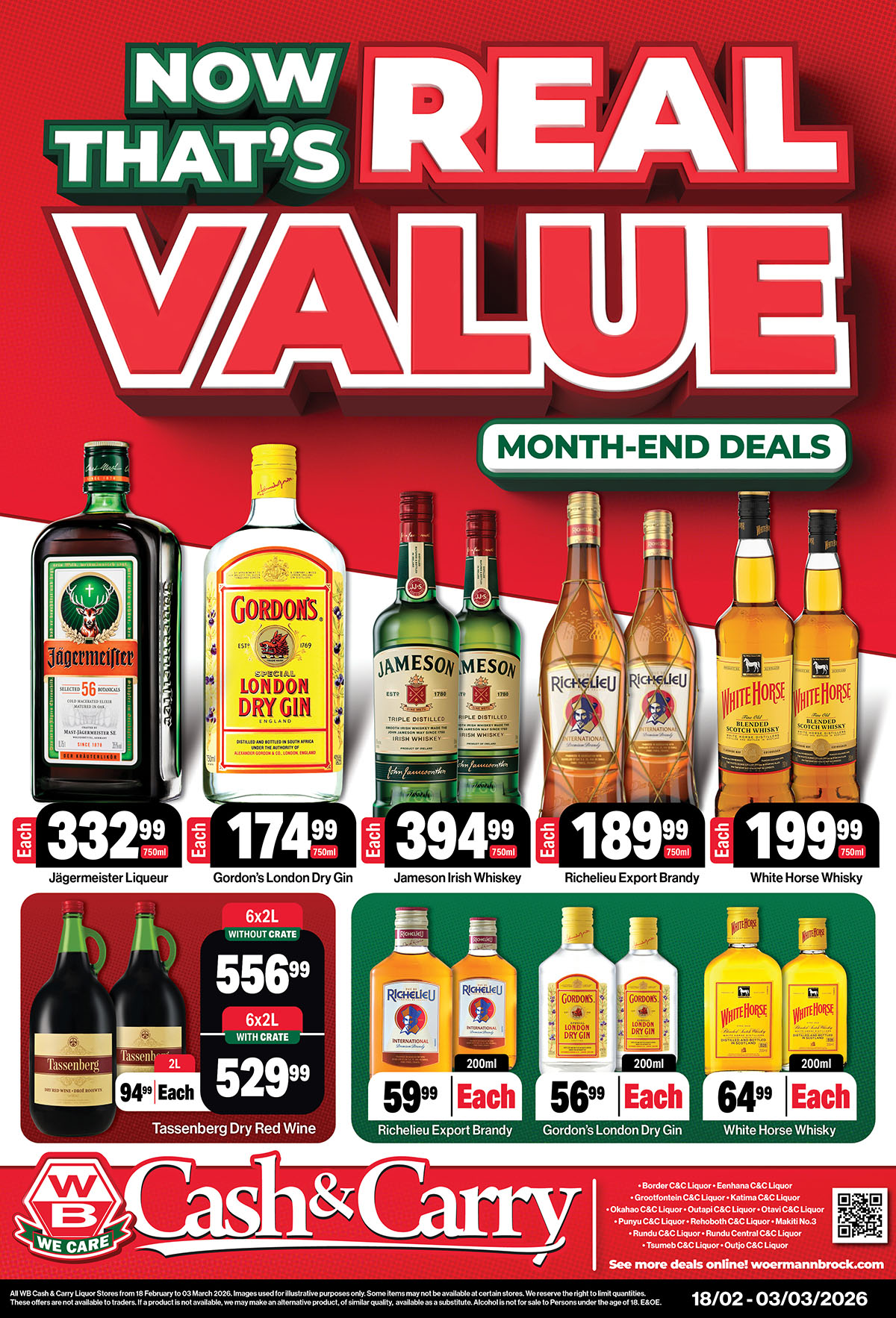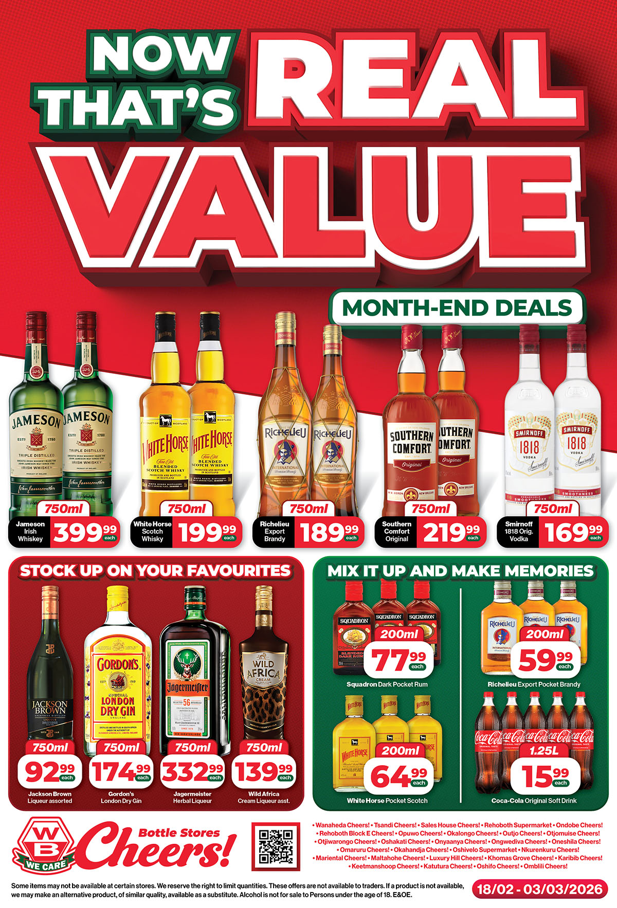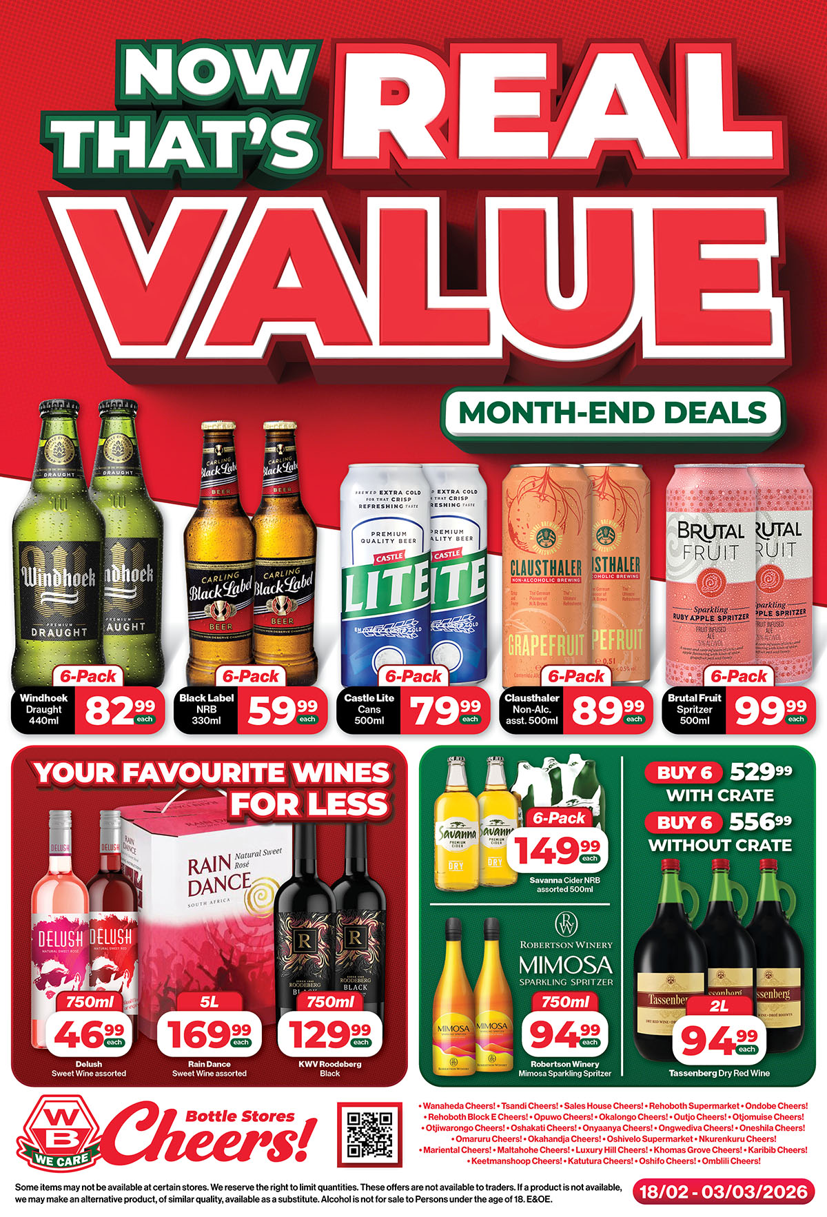 WB Cheers Bottle Stores Specials valid 18 February – 03 March 2026 | Namibia