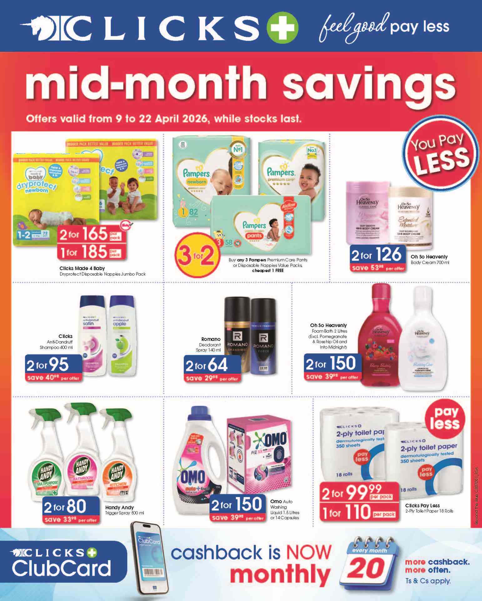 Clicks “mid-month savings” valid 09 – 22 April 2026 | South Africa Clicks “Beauty Fair” valid 25 March – 22 April 2026 | South Africa Clicks Baby Club Magazine Issue 3/2025