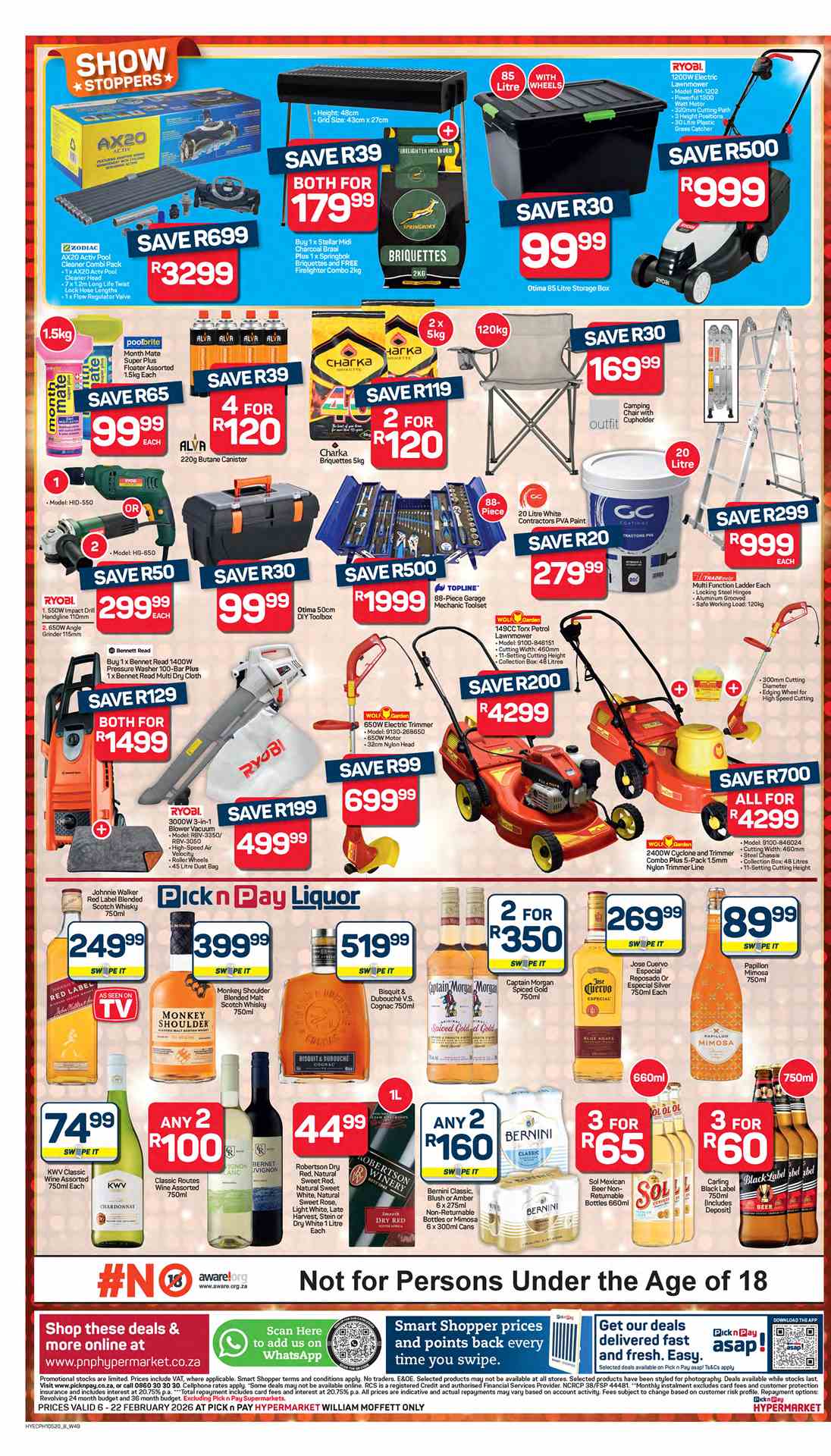 Pick n Pay Hypermarket Specials valid 06 – 22 February 2026 | William Moffett, Gqeberha (Port Elizabeth), Eastern Cape Pick n Pay Hypermarket “Audio Visual & Large Appliances” Specials valid 09 – 24 February 2026 | South Africa View all EASTERN CAPE Catalogues & Specials View more Eastern Cape stores catalogues: Pick n Pay Pick n Pay Hypermarket Pick n Pay Liquor Food Lover’s Market Checkers Checkers LiquorShop Shoprite Shoprite LiquorShop Usave Boxer Mthatha/EL Boxer GQ/PE Boxer Liquors OK Liquor OK Foods Woolworths KZN/EC Game Makro Makro Food SPAR & SUPERSPAR Mthatha SPAR SUPERSPAR Woolworths WC/EC Clicks Dis-Chem PEP Go to other Provinces: (GP) Gauteng (WC) Western Cape (EC) Eastern Cape (KZN) Kwa-Zulu Natal (FS) Free State (MP) Mpumalanga (LP) Limpopo (NW) North-West (NC) Northern Cape