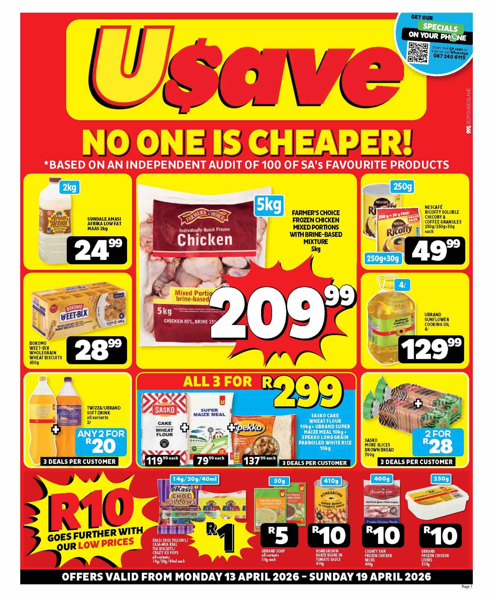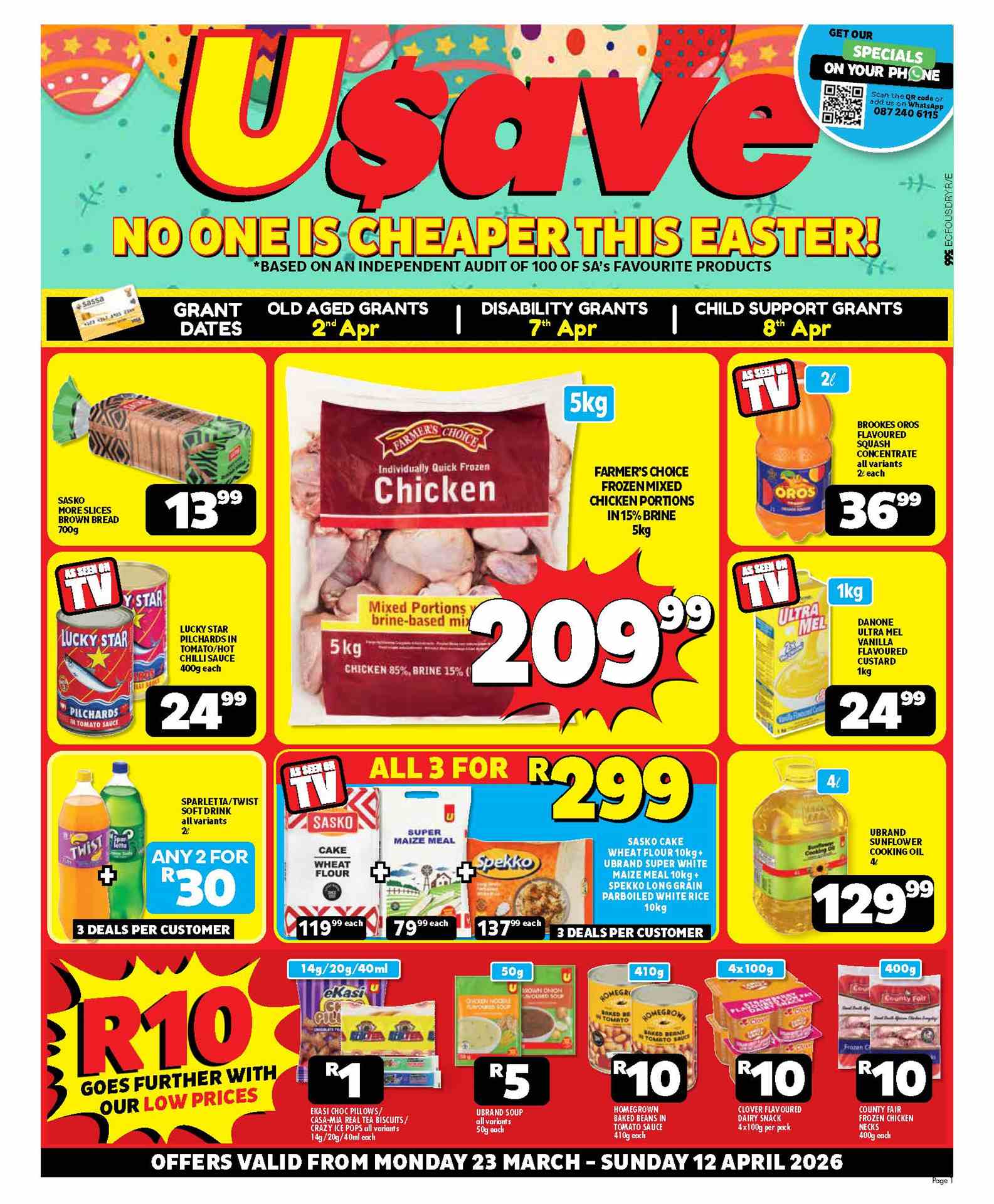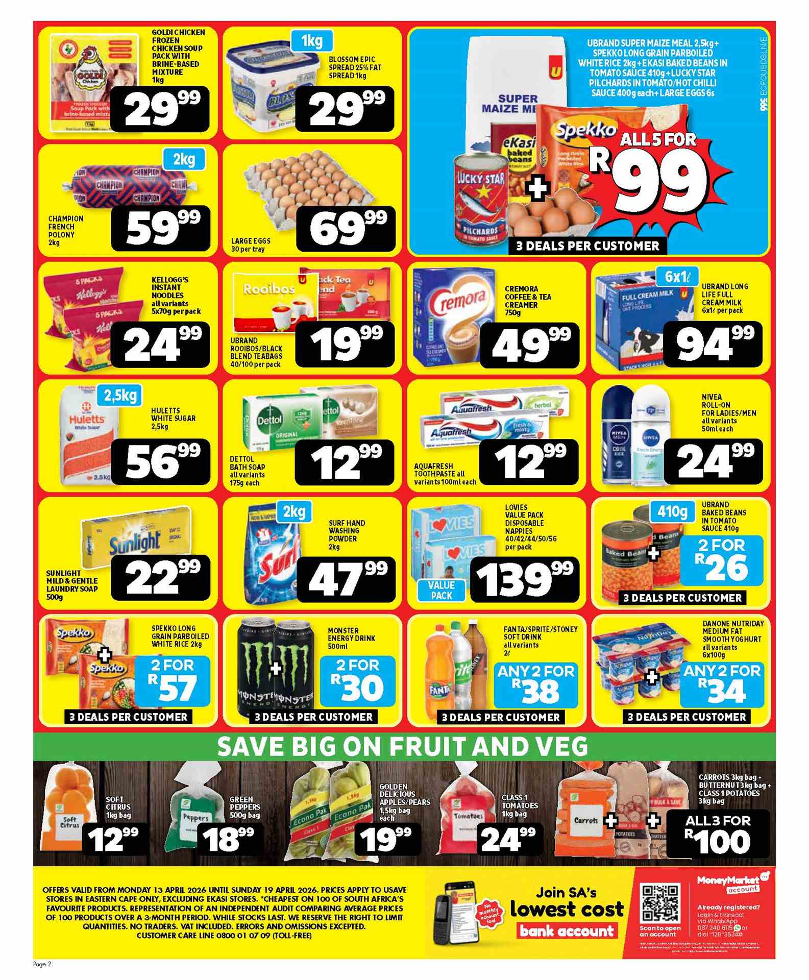 Usave Specials valid 13 – 19 April 2026 | (EC) Eastern Cape Usave “Easter Favourites” Specials valid 23 March – 12 April 2026 | (EC) Eastern Cape View all EASTERN CAPE Catalogues & Specials View more Eastern Cape stores catalogues: Pick n Pay Pick n Pay Hypermarket Pick n Pay Liquor Food Lover’s Market Checkers Checkers LiquorShop Shoprite Shoprite LiquorShop Usave Boxer Mthatha/EL Boxer GQ/PE Boxer Liquors OK Liquor OK Foods Woolworths KZN/EC Game Makro Makro Food SPAR & SUPERSPAR Mthatha SPAR SUPERSPAR Woolworths WC/EC Clicks Dis-Chem PEP Go to other Provinces: (GP) Gauteng (WC) Western Cape (EC) Eastern Cape (KZN) Kwa-Zulu Natal (FS) Free State (MP) Mpumalanga (LP) Limpopo (NW) North-West (NC) Northern Cape