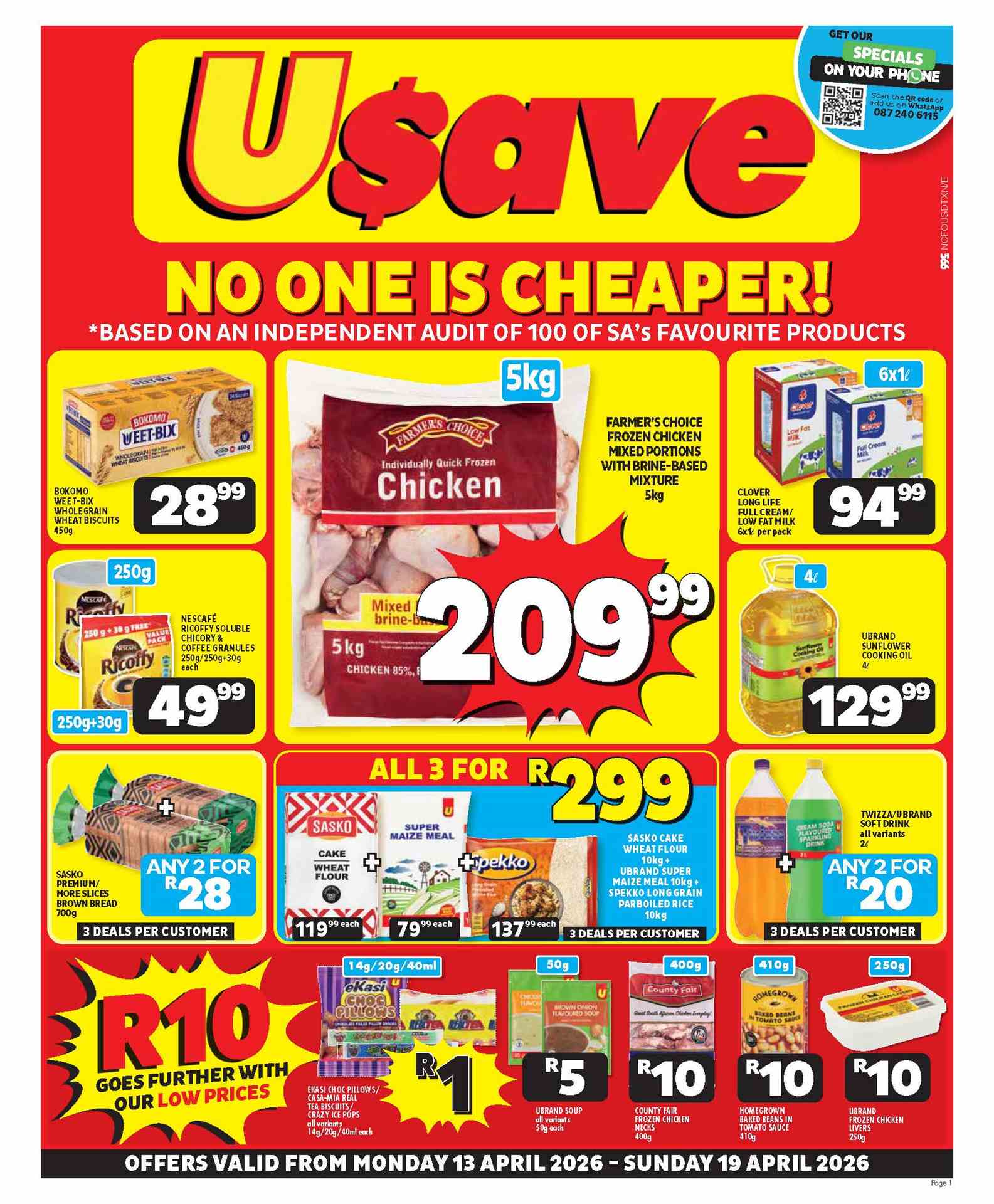 Usave Specials valid 13 – 19 April 2026 | (FS) Free State & (NC) Northern Cape Usave “Easter Favourites” Specials valid 23 March – 12 April 2026 | (FS) Free State & (NC) Northern Cape EXPIRED Usave eKasi Specials valid 10 – 23 February 2025 | (FS) Free State & (NC) Northern Cape