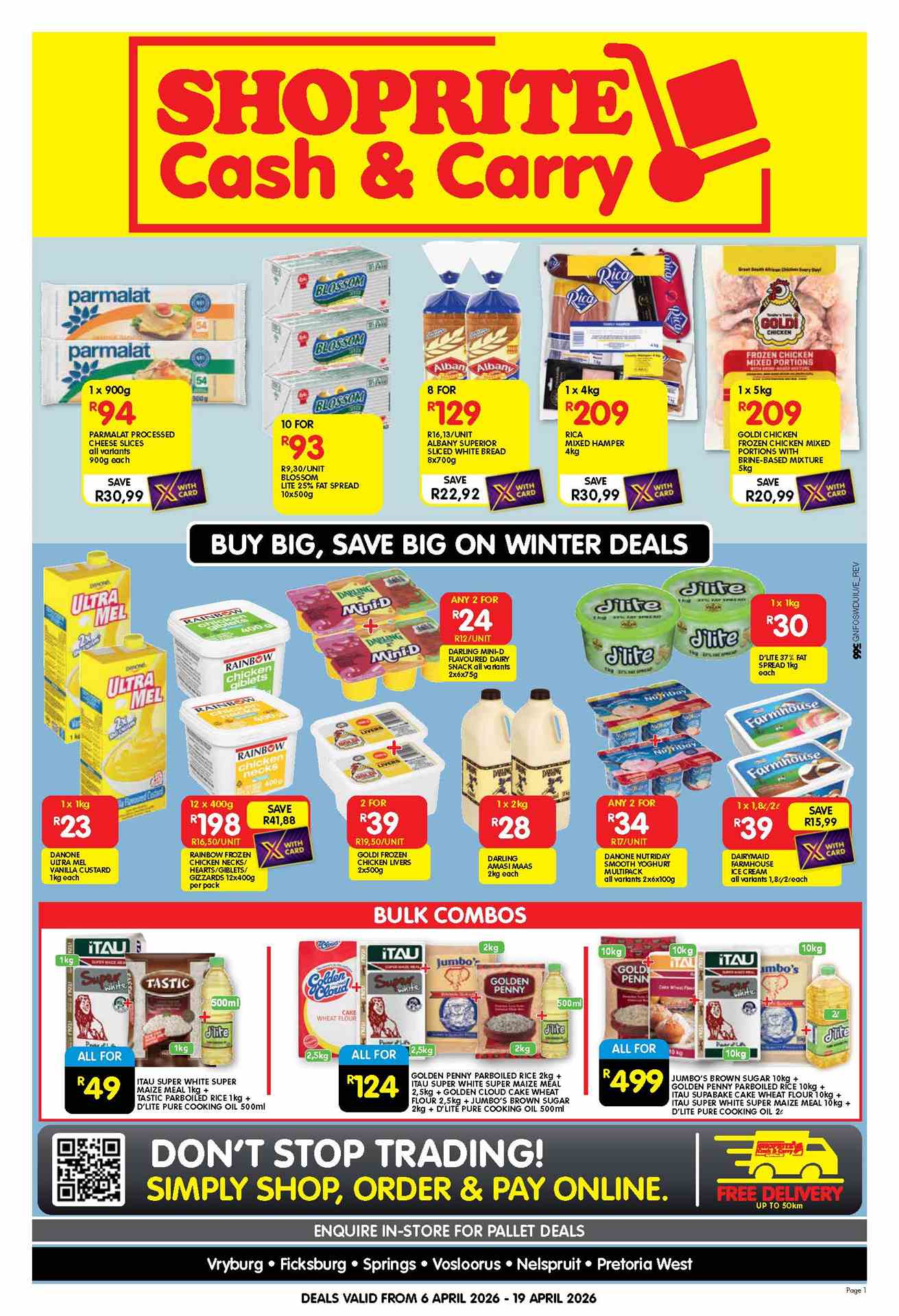 Shoprite Cash & Carry Specials valid 06 – 19 April 2026 | (GP) Gauteng, (NC) Northern Cape, (FS) Free State Diepkloof, Vosloorus, Springs, Nelspruit, Ficksburg, Vryburg & Pretoria West Shoprite Cash & Carry Tuckshop Specials valid 06 April – 03 May 2026 | (GP) Gauteng, (NC) Northern Cape, (FS) Free State Diepkloof, Vosloorus, Springs, Nelspruit, … Continue reading Shoprite Cash & Carry Catalogue & Specials | (GP) Gauteng, (MP), Mpumalanga, (FS) Free State