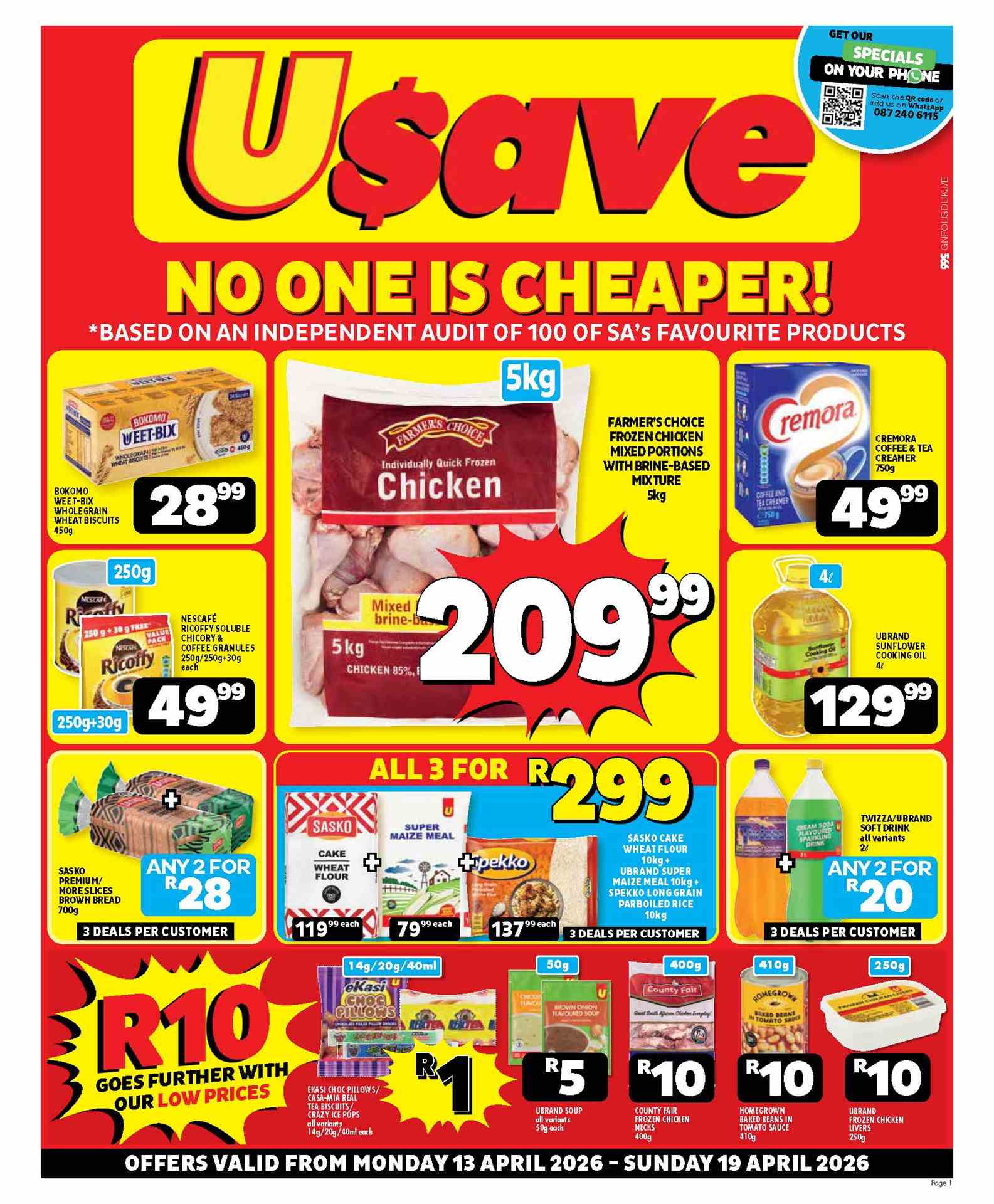 Usave Specials valid 13 – 19 April 2026 | (GP) Gauteng, (MP) Mpumalanga, (LP) Limpopo, (NW) North-West Usave “Easter Favourites” Specials valid 23 March – 12 April 2026 | (GP) Gauteng, (MP) Mpumalanga, (LP) Limpopo, (NW) North-West